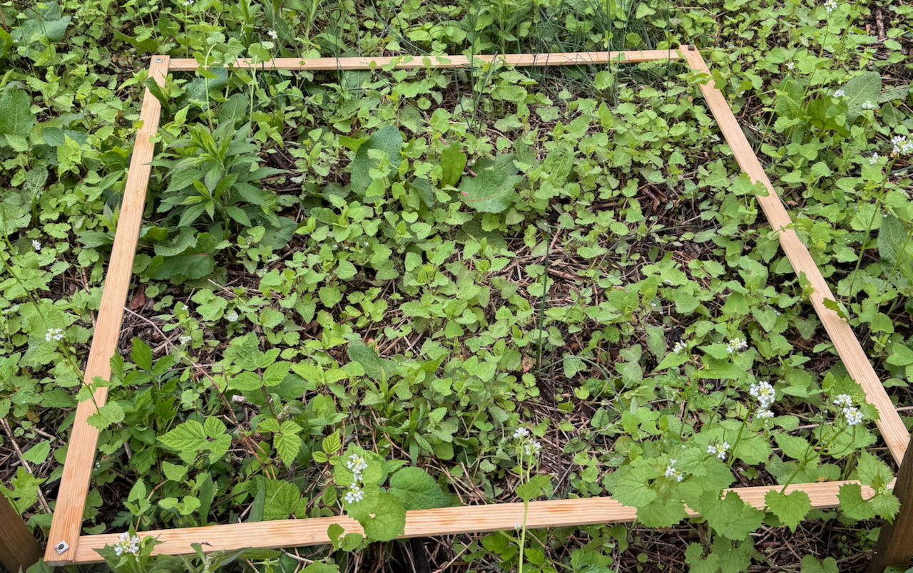 Mile a Minute seedlings growing within a square meter plot in early May. Photo by A. F. Senesac